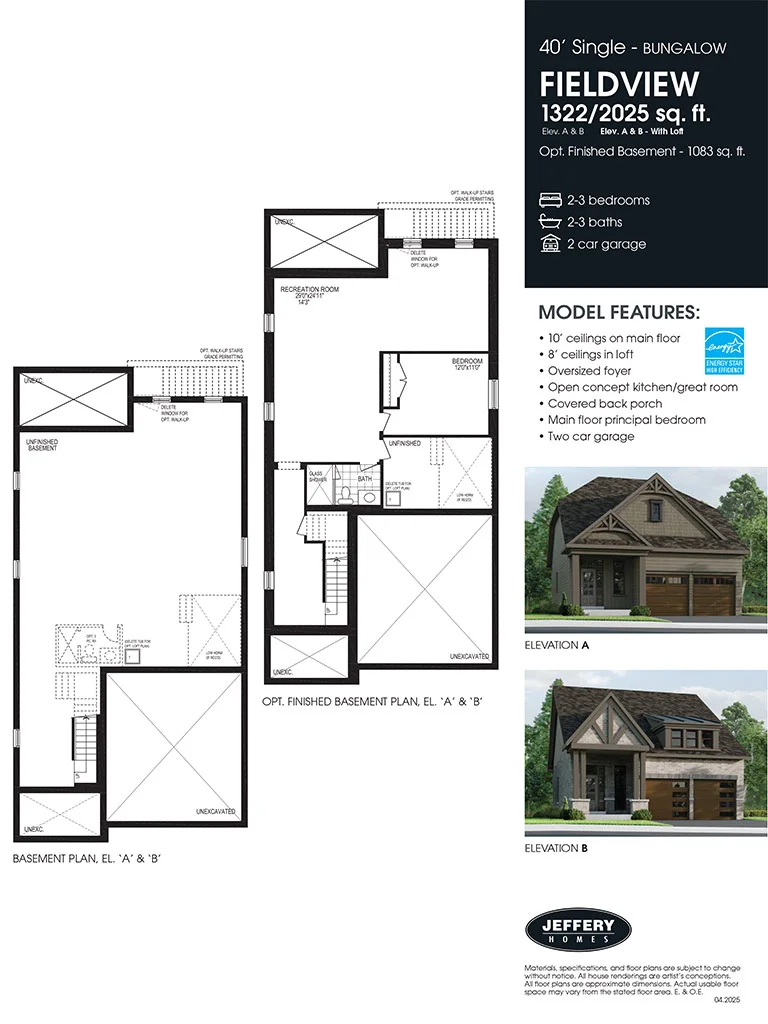 Looking for a bungalow? We are excited to offer the Fieldview model. This 40’ bungalow is well-suited for homeowners looking for an open concept layout. It features 10’ ceilings, open concept kitchen/great room and a covered back porch that even further extends your living space. Need even more elbow room? This model also has a loft option with 9’ ceilings, which is well worth considering. VIEWS by Jeffery Homes in North Oshawa is conveniently located near schools, the 407 and plenty of amenities, from shopping to restaurants.