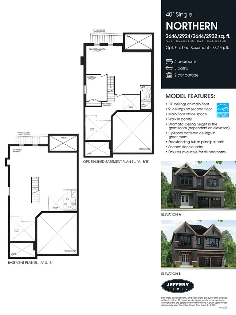 The spacious Northern 40’ model with main floor office and large great room is ideal for families who love to entertain. Enjoy your backyard while relaxing on your covered porch, located conveniently off of the eat-in kitchen. Craving a large walk-in closet? The second floor has one in the principal bedroom, as well as your own spa-inspired ensuite. Standard features also include 10’ ceilings on the main floor, 9’ ceilings on the second floor, a walk-in pantry and freestanding tub in the principal bath.