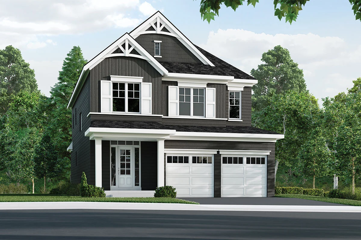The Viewpoint model features an open concept kitchen and living area, with an open-to-above staircase and an extended breakfast island. The large principal bedroom with double walk-in closets allows for more overall, uncluttered living space. Its ensuite has double sinks, a freestanding tub and a glass shower… giving you much needed “me space” in your busy home.
