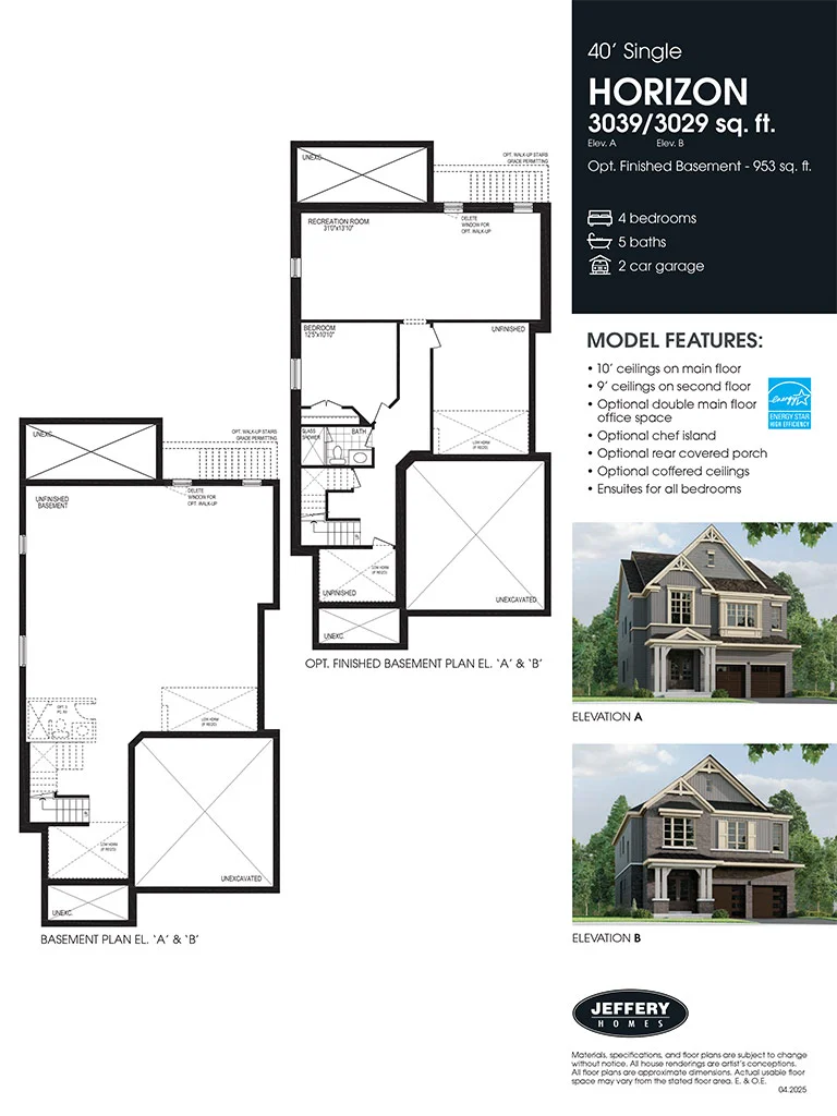 Welcome to the Horizon - where Luxury and Lifestyle Meet! From the moment you step inside, you’ll be captivated by its open, light-filled design, soaring ceilings, and thoughtful touches throughout. Need more than one office, or maybe an office space and a separate area for children to do homework? The Horizon model comes with two optional office/study spaces. The main floor also features 10’ ceilings, optional chef island and a rear covered porch. The spectacular features don’t stop on the main floor either. The second floor comes standard with 9’ ceilings, and ensuites for all 4 bedrooms will make washroom line-ups a thing of the past. VIEWS by Jeffery Homes in North Oshawa is conveniently located near schools, the 407 and plenty of amenities, from shopping to restaurants.