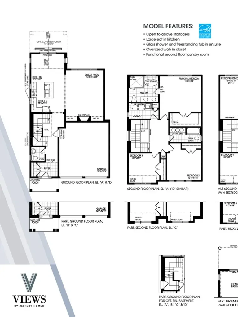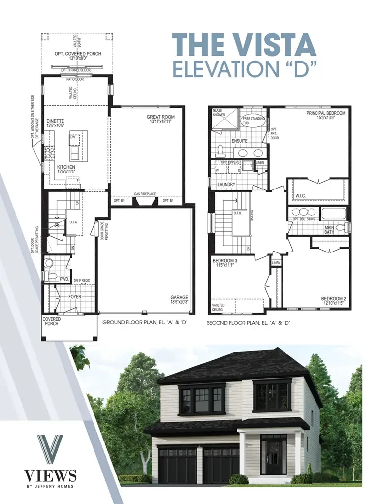 The Vista model features a large eat-in kitchen and an open-to-above staircase. The second floor has a full laundry room, and the principal bedroom has a “to-die-for” oversized walk-in closet along with an ensuite equipped with BOTH a freestanding tub and a glass shower. It’s the perfect retreat for relaxing and unwinding.